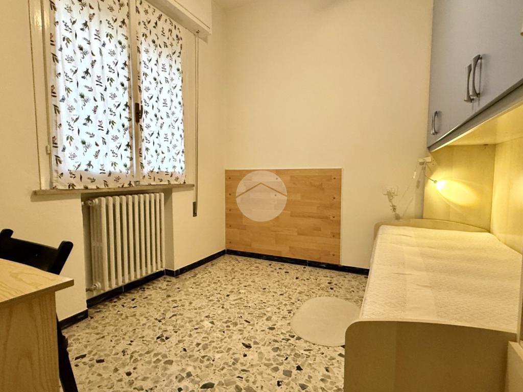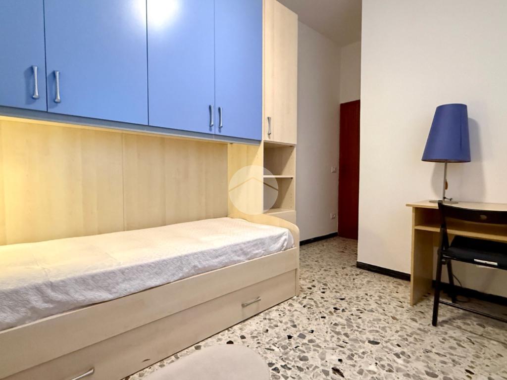 L'appartamento si compone di tre locali: due camere da letto accoglienti, un bagno finestrato ben organizzato con box doccia ed un soggiorno luminoso che si apre su un balcone, perfetto per momenti di relax all'aperto.